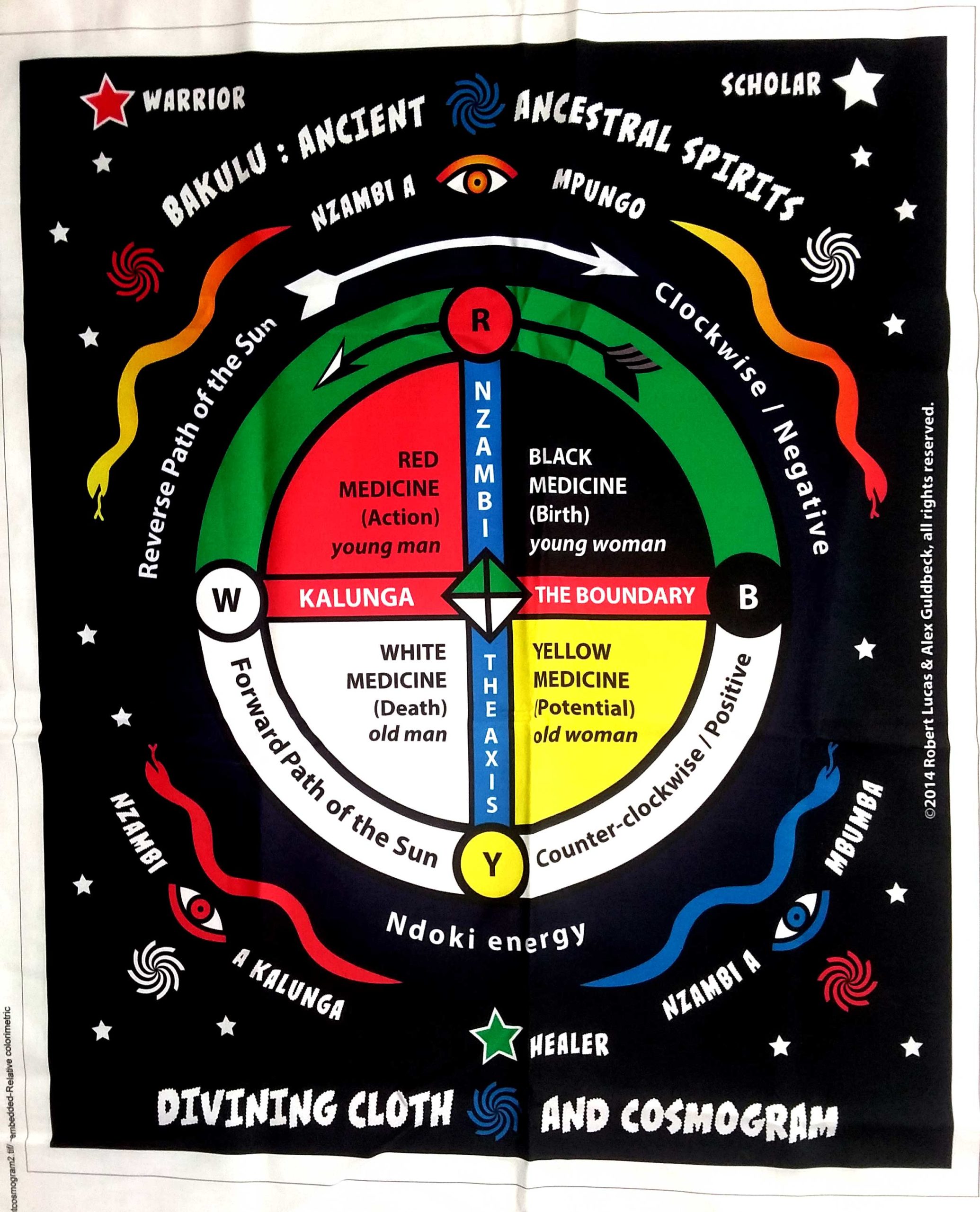 ADDENDUM: A few folks have asked me about the cloth on the table in the photograph, that’s actually the “light” version of a Kongo Cosmogram (sun wheel) I designed and had custom printed for a project I did with a friend a few years ago, please see inset view (on right) for a visual explanation.