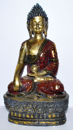 Creating peace and tranquility will come easy in your environment when you bring this buddha in.Large buddha sitting on a colorfully detailed pedestal with great symbolism throughout.Painted resin.