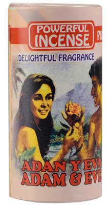 A canister of adam & eve powder incense.Use to invoke the power of the symbolic love shared by adam and eve to help make you feel strong, attractive and desirable and to make you more receptive to enjoyment in acts of kindness and love.