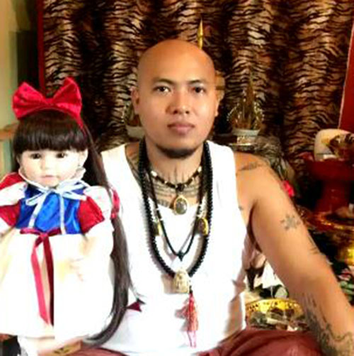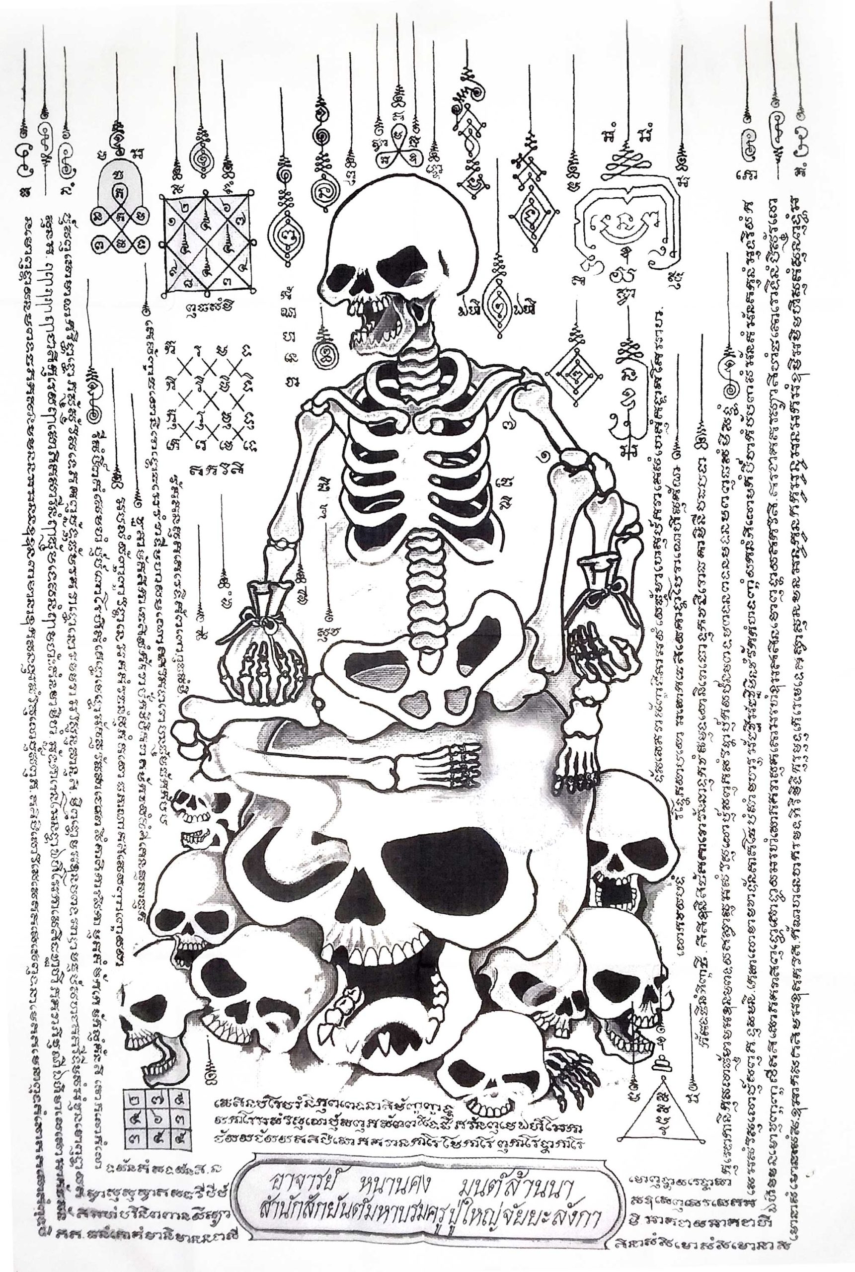 A temple blessed magic cloth blessed by the renowned Ajarn Nankhong depicting Phor Hong Prai, a necromantic spirit of wealth, gambling luck and business.