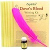 The doves blood writing kit comes with 5 sheets of parchment, 1 feather to fashion as a quill pen & 1 bottle of doves blood magical ink to create magic seals, spells & petitions of love, friendship & fidelity.