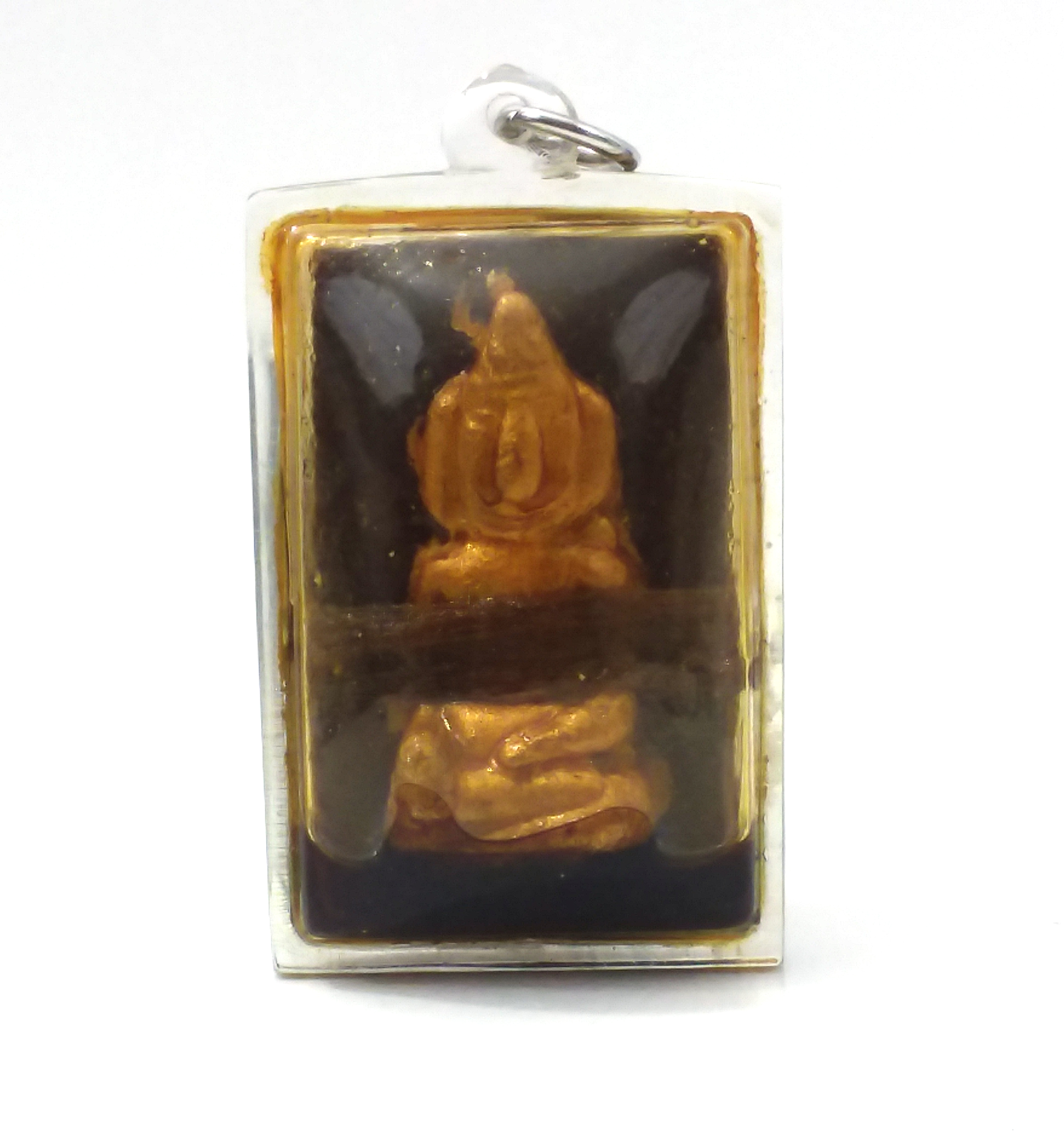 Bronze with ghost thread, loaded with maha sanaeh herbs and necromantic materials in the back, an astonishing piece and highly sought after. 2″ tall.