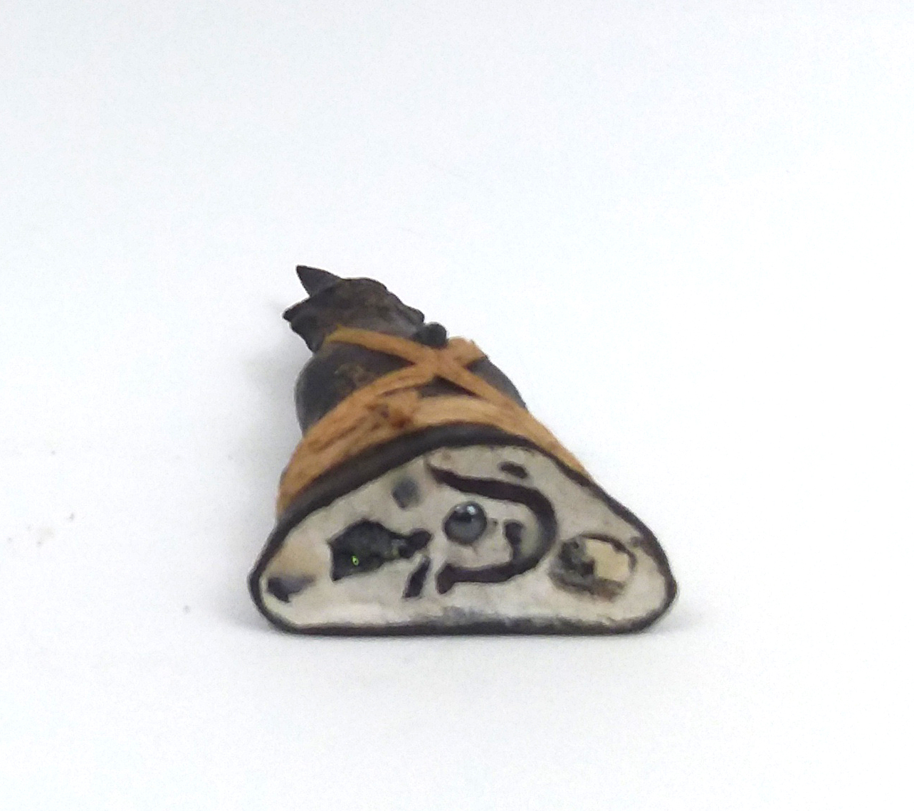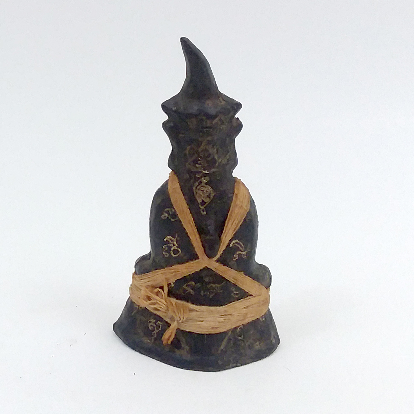 This is a fantastic bronze Phra Ngang statue from Luang Phor Suthat of Ubon Ratchathani. This Phra Ngang is here represented in his usual curved hat in the form of an antique ngang statue which LP Suthat has packed and consecrated. Luang Phor has also picked out gold yant to fit beautifully into the design. Luang Phor Suthat’s Yant geometry is some of the most beautiful in Thailand. The base of the statue has a coffin nail, a leklai orb, various gems and some pretty serious prai material. This makes this a strong Phra Ngang. =